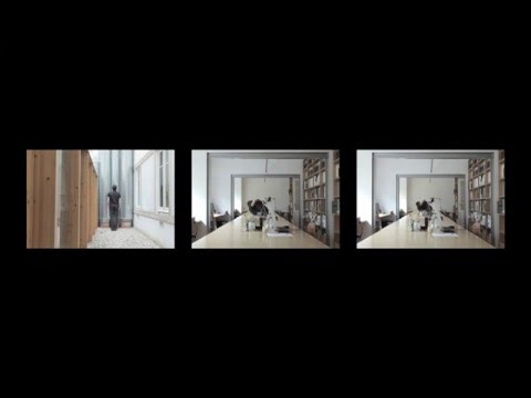 This temporary character inhabits these suspended spaces. Architecture is literally played. The small fringes in the regular use of these buildings are expanded into a play of architecture, into a mise-en-abíme. A series of images denounce this transgression, this trespassing, a very personal appropriation of space, the invention of an opportunity to experience notable architecture. Maybe Tomaz is still as curious about space as any architect. Along the play of architecture, Tomaz also gains access to those places in which architects play themselves: famous architecture studios, like Steven Holl’s in New York, the birth place of museums like the Kiasma in Helsinki, the Nelson-Atkins in Kansas city, or the precious and ever changing façade of StoreFront for Art and Architecture in New York. Once again an anonymous character dressed in black (like a real architect) morphs with the environment. This part of Tomaz’s work elicits architect’s voyeuristic curiosity. How architects stage their work space? How they organize their files? Can we look over their shoulders while they invent space? This presence of a generic character does not translate to space, conversely, the more generic the character that uses these spaces, the more detailed the attention is, the more specific these spaces become. Playing these spaces does not make them pop; the white noise of the play of anonymous characters paradoxically singularizes them, returns them strange enough for a new engagement.